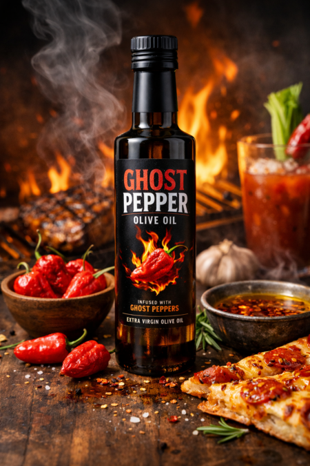 Our Ghost Pepper Olive Oil delivers an intense, lingering heat balanced by smooth, high-quality olive oil. Infused with one of the world’s hottest peppers, it adds depth and excitement without overpowering the dish—perfect for heat lovers who appreciate real flavor.